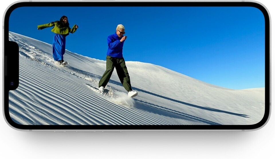 Модель имеет 6.1-дюймовый экран Super Retina XDR. Разрешение составляет 2532 х 1170 пикселей, плотность — 460 ppi. Отображаемая картинка — четкая, контрастная и насыщенная. Пиковая яркость составляет 1200 нит при HDR, в остальных случаях — 800 нит. Специальное олеофобное покрытие устойчиво к отпечаткам пальцев.